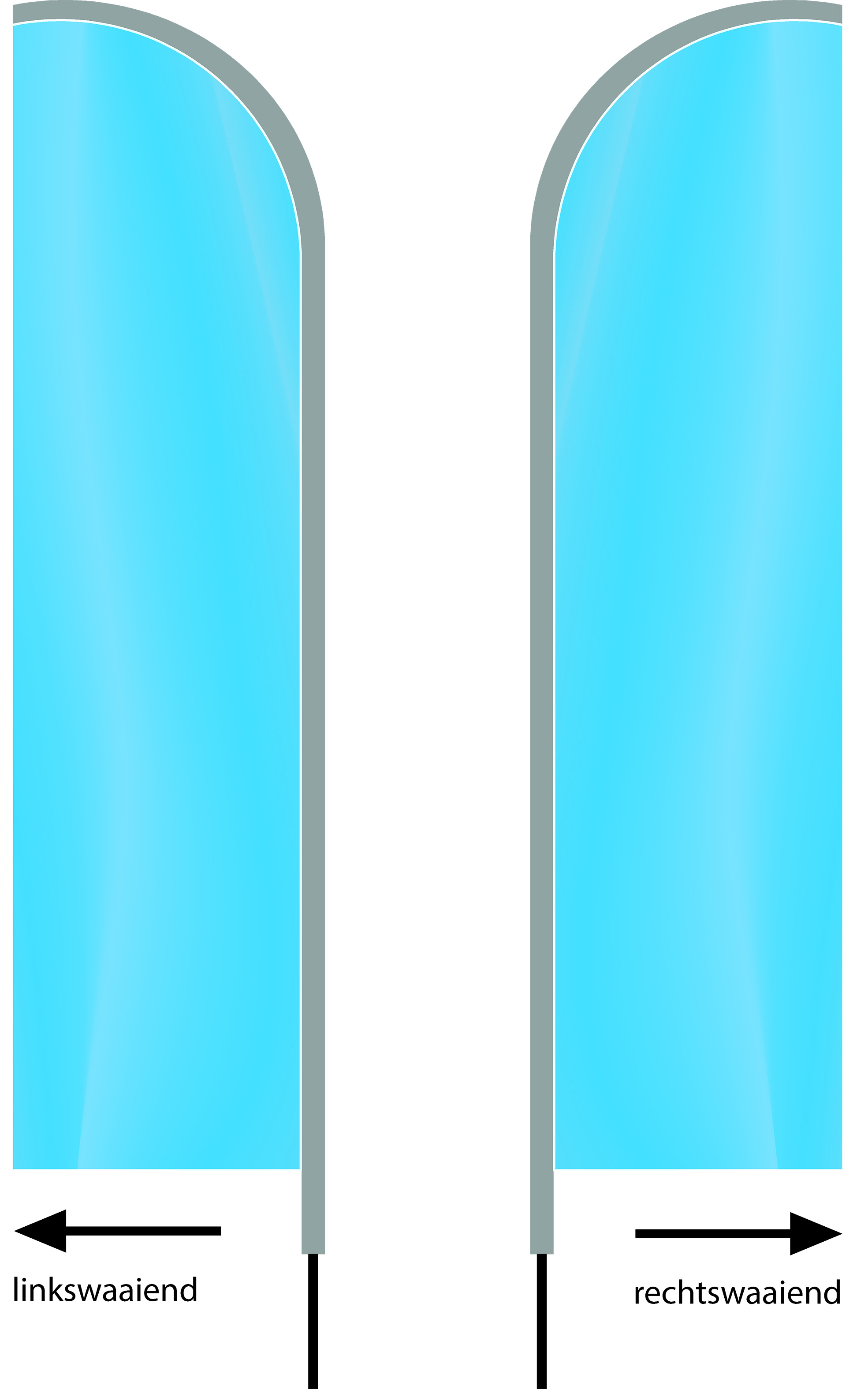 This refers to which side of the pole the flag’s design is readable (not mirrored). For a right-swaying flag, the flag is on the right side of the pole, and the design and/or text is correctly visible. The pole sleeve is then on the left side of the flag. For a left-swaying beach flag, it is the opposite.
