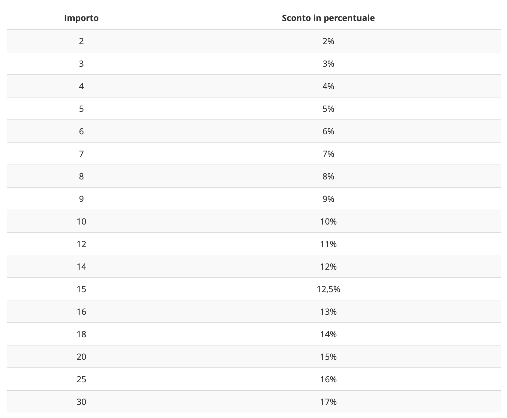 Quando ordini più prodotti dello stesso modello e della stessa misura, viene applicato uno sconto quantità. Lo sconto è già calcolato nel prezzo unitario ed è immediatamente visibile durante il processo di ordine.